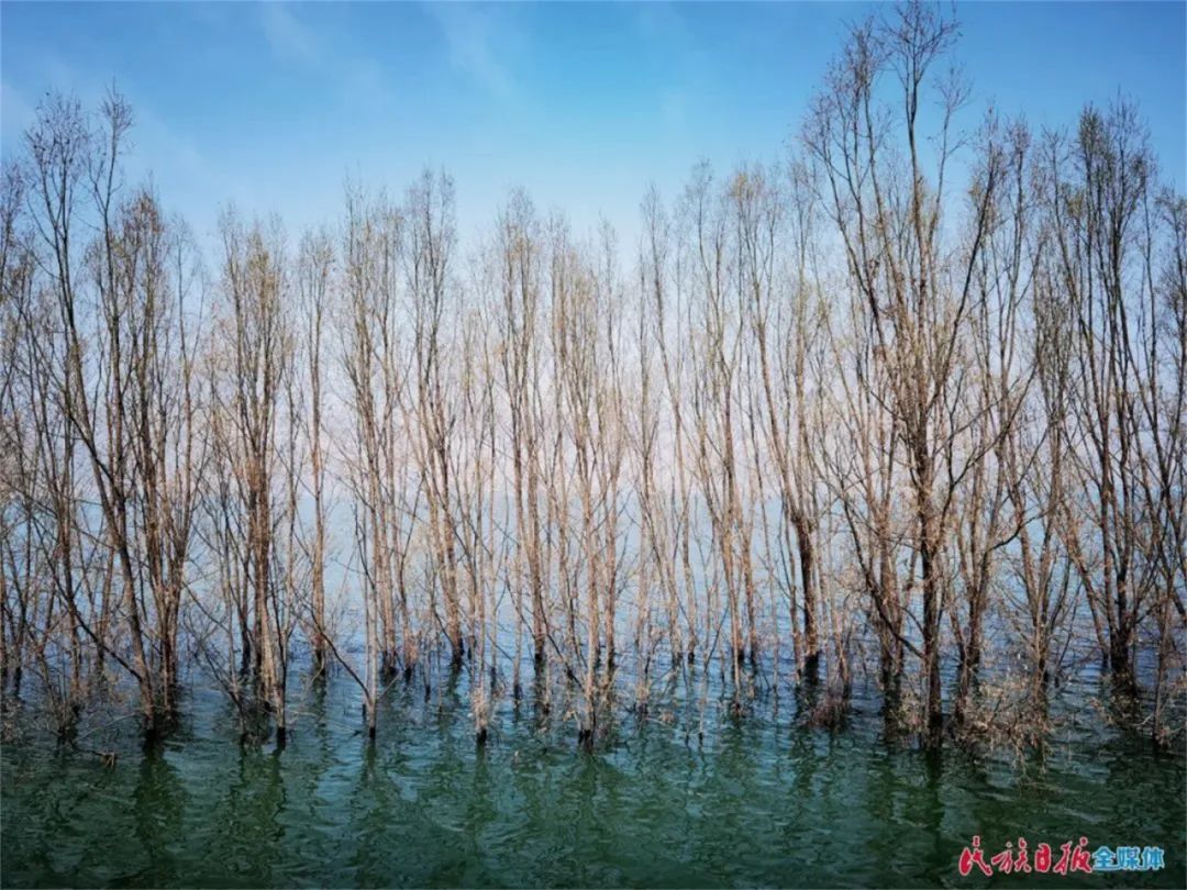 在岸邊,可以看到10公里的柳樹“站”在水中,根連著根,枝連著枝。這些高大的柳樹,不僅減緩了水面上襲來的風浪,形成第一道保護“堤壩”,還成為一道亮麗的風景線——倒映在湖面上的樹木婀娜多姿,鳥兒在樹杈上筑巢棲息,魚兒在樹下游玩,好一幅綿長的水鄉(xiāng)畫卷。