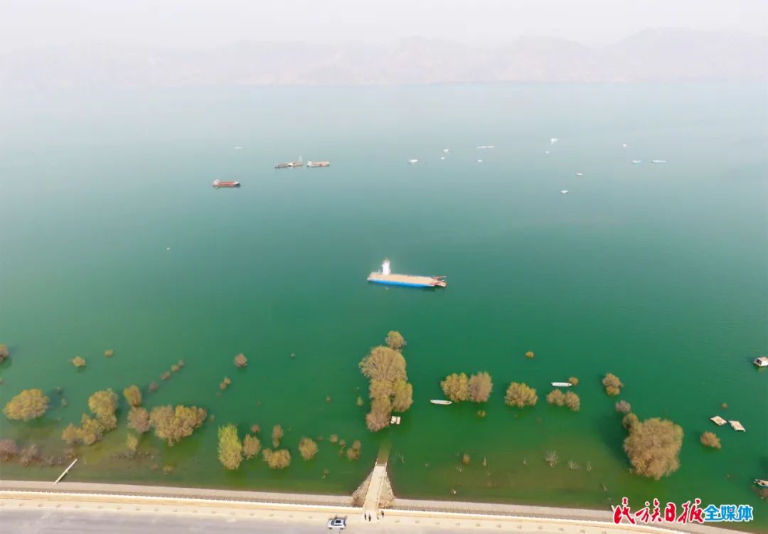 3月23日,記者來到庫區(qū)岸邊,遠看,湖水湛藍,輕舟游弋,水鳥嬉戲;近看,碧波蕩漾,水清見石,魚翔淺底。在人們的贊嘆聲中,湖面上劃過一艘小船,那是打撈清理黃河垃圾的清潔船。這艘船從早到晚,來回游動,及時清理著河面的垃圾。