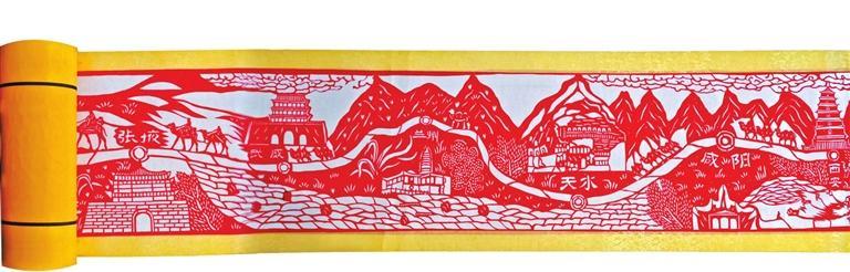 用剪紙藝術(shù)再現(xiàn)古絲綢之路的盛景,國(guó)家級(jí)非遺項(xiàng)目定西剪紙省級(jí)代表性傳承人付忠民經(jīng)過(guò)長(zhǎng)時(shí)間的構(gòu)思和調(diào)研,又歷經(jīng)5個(gè)月,終于創(chuàng)作出了長(zhǎng)達(dá)23.38米的剪紙長(zhǎng)卷——《古絲綢之路全圖》,再現(xiàn)了絲路古道的文化藝術(shù)魅力,該長(zhǎng)卷曾一舉創(chuàng)下世界紀(jì)錄協(xié)會(huì)“世界上最長(zhǎng)的剪紙長(zhǎng)卷”的世界紀(jì)錄。