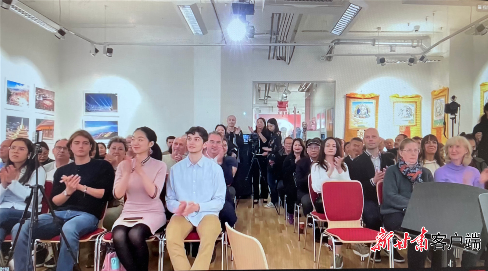 在奧地利維也納參會觀眾正在收看原創(chuàng)MV《我畫個甘肅給你看下》。