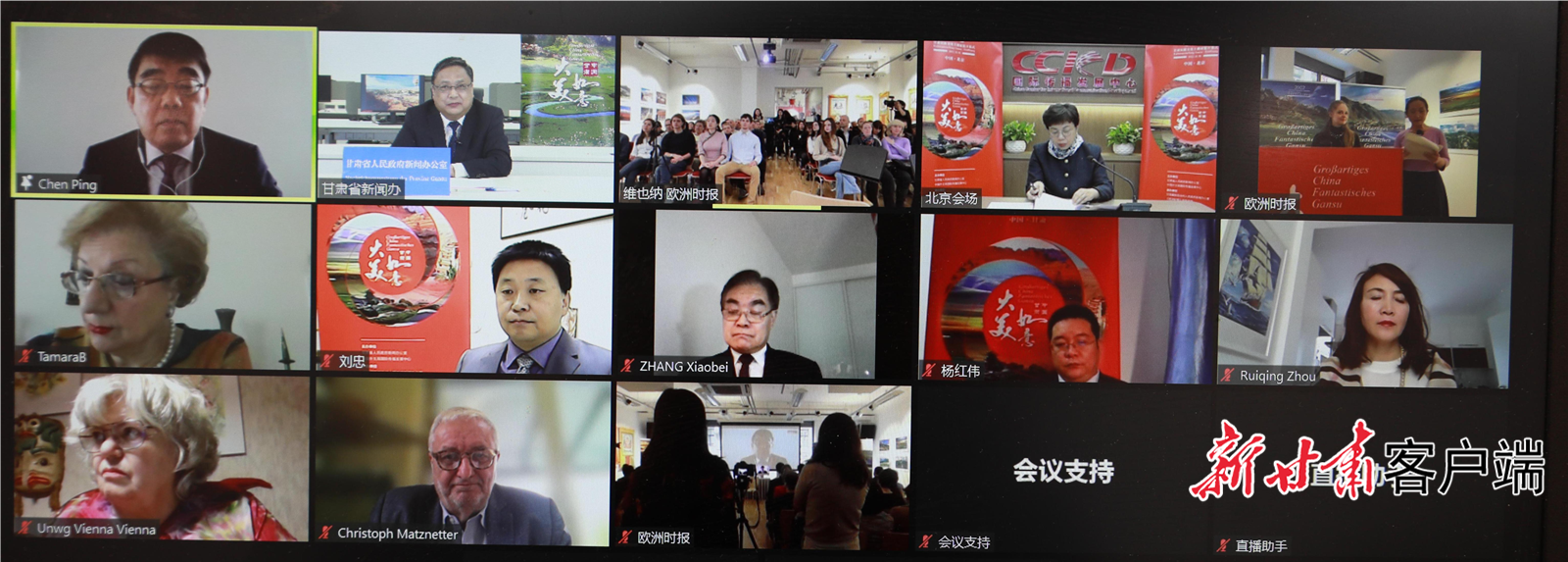 主題展開幕式上,甘肅省委宣傳部副部長、省政府新聞辦主任郭錦詩致歡迎辭,并介紹主題展覽情況。中國駐奧地利大使館文化參贊陳平,維也納聯(lián)合國婦女協(xié)會主席桑迪亞·普瑞拉,中國外文局副總編輯、國際傳播發(fā)展中心主任陳實,奧地利聯(lián)邦商會副主席克里斯托弗·馬茨內(nèi)特,歐洲時報文化傳媒集團總裁,歐洲時報社社長張曉貝出席開幕式并致辭。甘肅省委宣傳部副部長、省政府新聞辦主任郭錦詩線上出席并宣布主題展開幕。