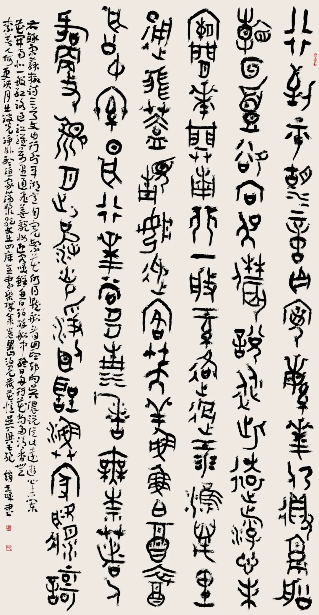 展覽作品風(fēng)格多樣,立意高遠。作品模仿少、創(chuàng)造多,減少外在形式,力求豐富內(nèi)涵。“二王”體系雖然占主流,但是寫經(jīng)、漢簡占有相當(dāng)大的數(shù)量,百花齊放,百花爭艷。極大地改變了“有時展出的作品還存在著抄寫代替書寫,不諳文句,不解文意,不識文字,不具文心”的情況。書法家們把寄情抒懷與記言存史相結(jié)合,將個人藝術(shù)追求與時代發(fā)展潮流相貫通,顯示了深厚扎實的藝術(shù)功力,呈現(xiàn)了創(chuàng)新發(fā)展的最新成果。