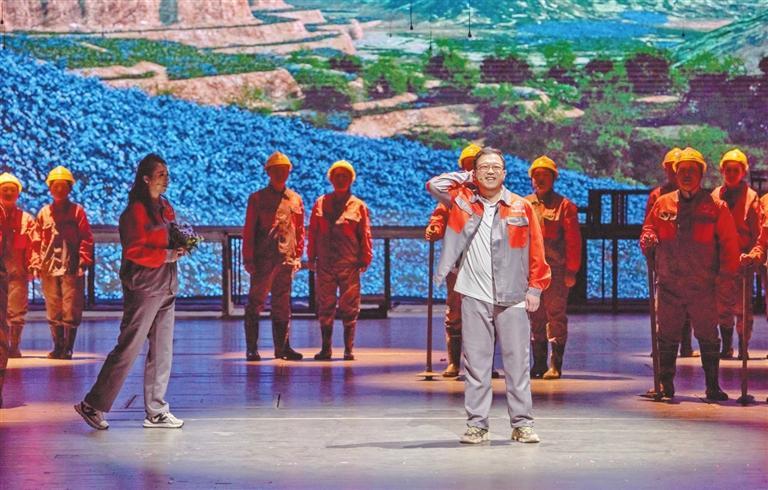 在兩個(gè)小時(shí)的演出中,全體演職人員以群像式表演,將蘭渝鐵路建設(shè)者的科技創(chuàng)新精神、愚公移山精神、大國工匠精神完美展現(xiàn)在舞臺(tái)上。“那座山,不太高,胡麻花開山上頭,山根根,開洞洞,火車鉆進(jìn)山里頭……”伴隨著悠揚(yáng)的謝幕音樂,劇場內(nèi)爆發(fā)出了經(jīng)久不息的熱烈掌聲。