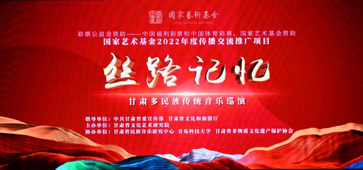 3月25日,“絲路記憶·甘肅多民族傳統(tǒng)音樂巡演”在甘肅省蘭州市金城大劇院開幕。作為2022年度國家藝術基金傳播交流推廣項目,“絲路記憶·甘肅多民族傳統(tǒng)音樂巡演”旨在通過音樂展示甘肅的人文風貌與民族特色,體現甘肅民族音樂的藝術特征,推動中華優(yōu)秀傳統(tǒng)文化在高校傳播。