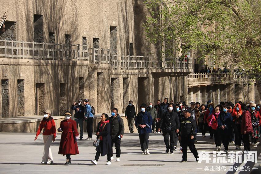 進入4月份以來,來自各地的游客紛至沓來,世界文化遺產(chǎn)甘肅敦煌莫高窟景區(qū)迎來旅游熱。