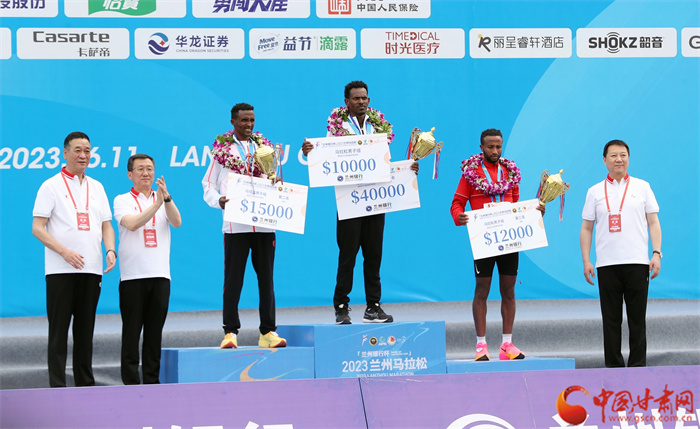 經(jīng)過兩個多小時的激烈角逐,全程馬拉松男子和女子組名次相應產(chǎn)生。其中,男子馬拉松第一名打破了蘭馬賽會紀錄,女子馬拉松第一、二、三名均打破了蘭馬賽會記錄。
