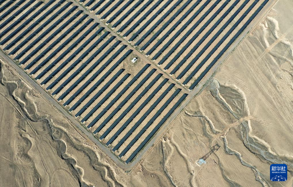 這是中國(guó)能建張掖甘州南灘30萬(wàn)千瓦光伏發(fā)電項(xiàng)目(8月11日攝,無(wú)人機(jī)照片)。新華社記者 金良快 攝