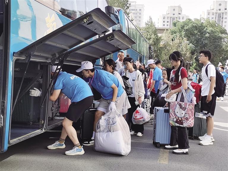 在城關(guān)校區(qū)校車接駁點,金師傅一刻不停地忙碌著。在他和同事們的通力協(xié)作下,一輛輛大巴有序地停靠到接駁點,大家手腳麻利地與志愿者配合,將新生們的行李物品裝車后,引導(dǎo)大家上車,然后將新生和家長送往榆中校區(qū)。“我們后勤保障部這次總共組織了大小車輛71輛,按照學(xué)校部署在各迎新點負(fù)責(zé)迎接和運輸新生家長。為了保障路面暢通,我們與交管部門也都事先進行了溝通,確保新生安全、快速入校報到。”金師傅說。