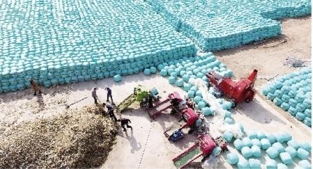 廣袤大地鋪金繡綠。在廣河縣齊家鎮(zhèn)糧改飼種植基地,一臺臺大型收割機正在田間忙碌穿梭,玉米連同秸稈被農(nóng)機收割,一塊塊農(nóng)田耕耘平整,構(gòu)成一幅秋收風景圖;