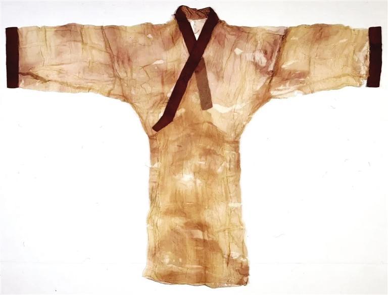 值得一提的是,在馬王堆漢墓出土的文物中,最受矚目的是做工精細(xì)和舉世聞名的素紗單衣,該件傳世珍寶僅重49克,相當(dāng)于一個普通雞蛋的重量,乃西漢時期紡織巔峰之作。素紗單衣衣長128厘米,通袖長190厘米。右衽直裾,重49克。漢代文獻描述其薄如蟬翼,輕若云霧。