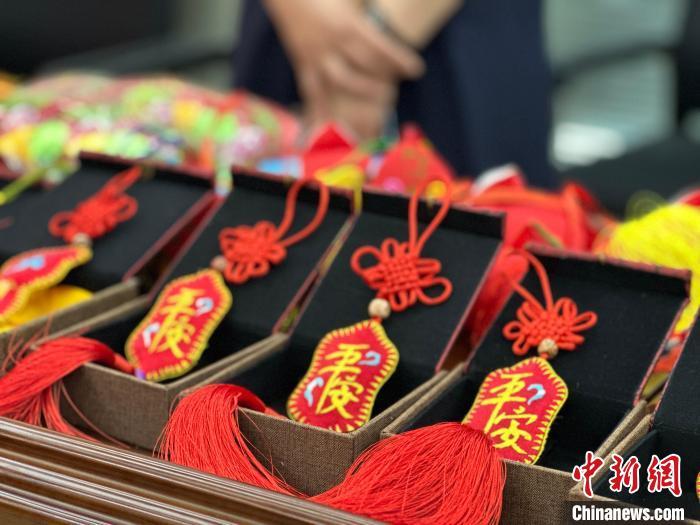 5月7日,“甘肅省2024年‘文化和自然遺產(chǎn)日’非遺宣傳展示展銷(xiāo)主會(huì)場(chǎng)系列活動(dòng)暨第十九屆慶陽(yáng)香包民俗文化節(jié)”新聞發(fā)布會(huì)舉行。圖為發(fā)布會(huì)現(xiàn)場(chǎng)展示的香包制品。楊娜 攝
