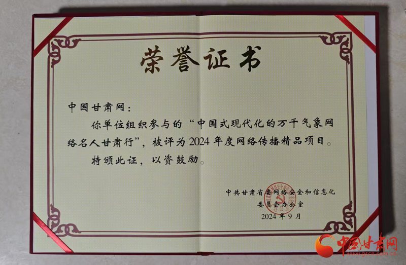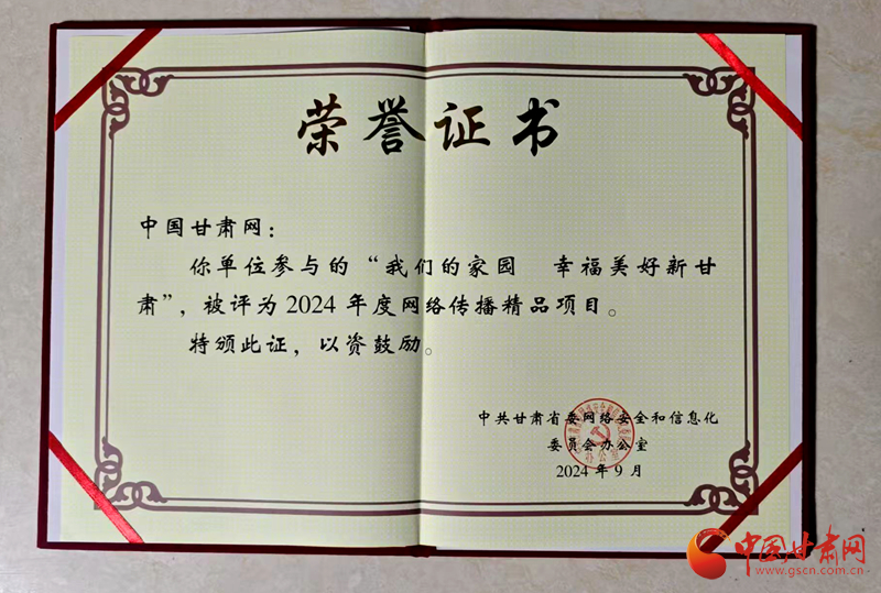 同時,中國甘肅網(wǎng)參與的“我們的家園幸福美好新甘肅”和“中國式現(xiàn)代化的萬千氣象網(wǎng)絡名人甘肅行”兩個項目被評為2024年度網(wǎng)絡傳播精品項目。