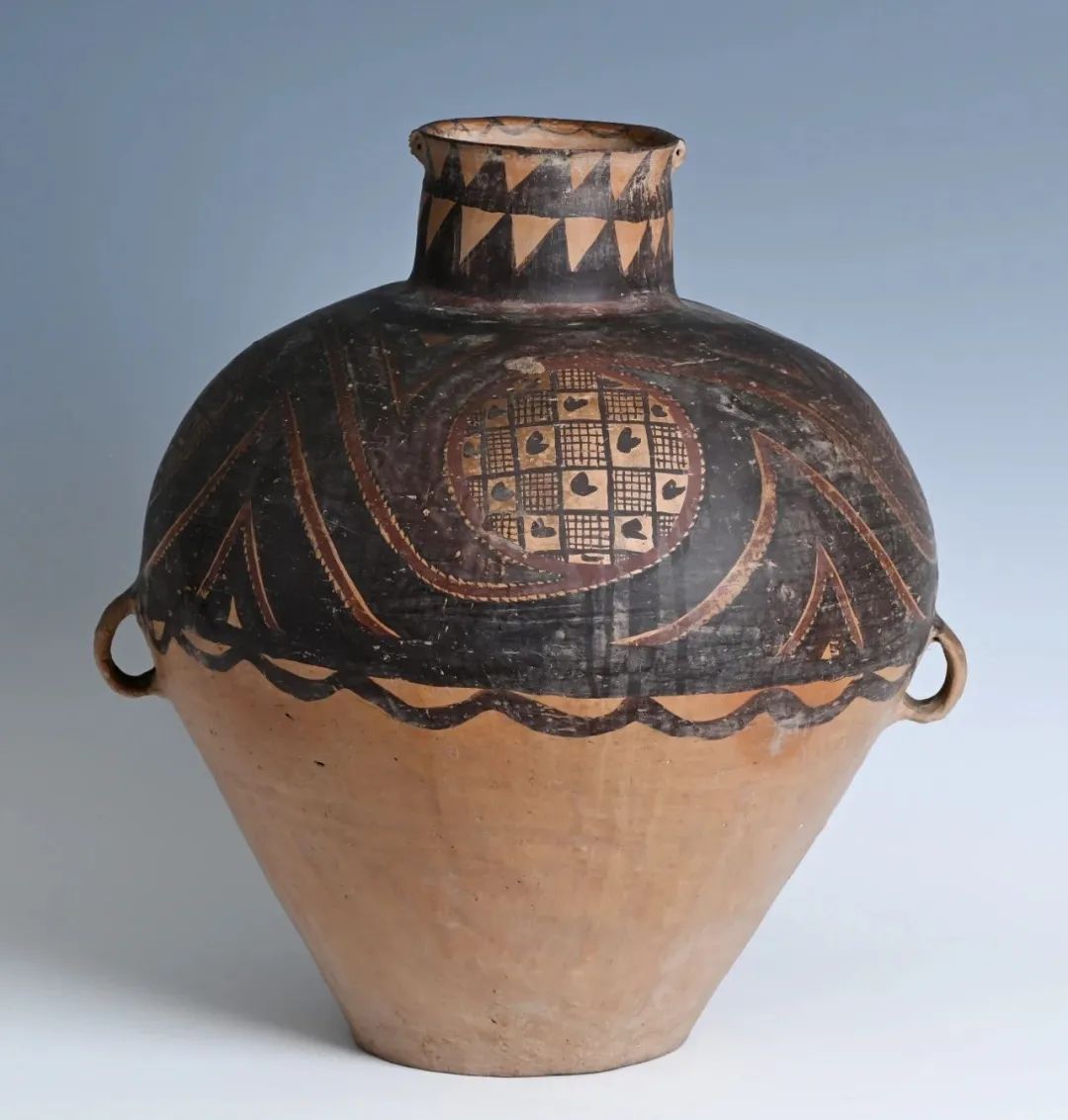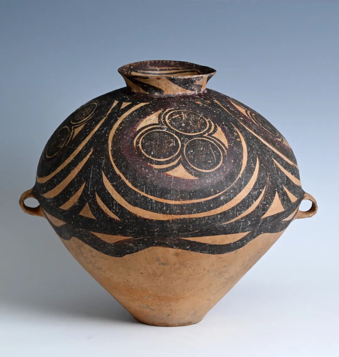 馬家窯古陶上的漩渦紋,回旋起伏,遒勁向上,仿佛是黃河水的奔騰不息、自然界的美妙律動(dòng),又似遠(yuǎn)古先民們心中神圣的圖騰與堅(jiān)定的信仰。