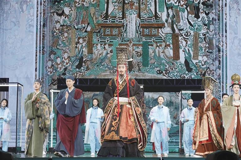音樂話劇《受到召喚·敦煌》由國家文物局、文化和旅游部藝術(shù)司、文化和旅游部產(chǎn)業(yè)發(fā)展司及省委宣傳部、敦煌研究院、敦煌市人民政府支持,中國國家話劇院出品演出,總臺(tái)央視網(wǎng)、央視頻、北京大麥文化傳播有限公司、北京國話數(shù)字文化科技有限公司聯(lián)合出品。12月13日至15日,該劇將在上海梅賽德斯-奔馳文化中心繼續(xù)上演。