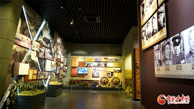 其中,巨幅半景畫配多媒體投影再現(xiàn)沈家?guī)X、營盤嶺、竇家山激戰(zhàn)。下沉式電子沙盤動(dòng)態(tài)演示三軍合圍蘭州態(tài)勢。展柜陳列國家檔案局、中央檔案館調(diào)取的戰(zhàn)役電報(bào)、烈士證件、支前小車等原件290余件。