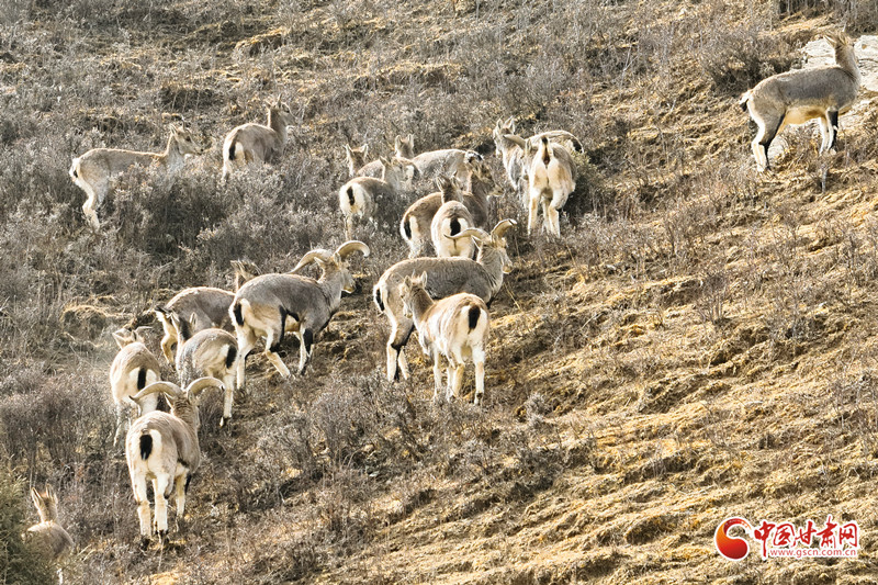 “巖壁精靈”巖羊群現(xiàn)祁連山民樂段 生態(tài)向好添力證