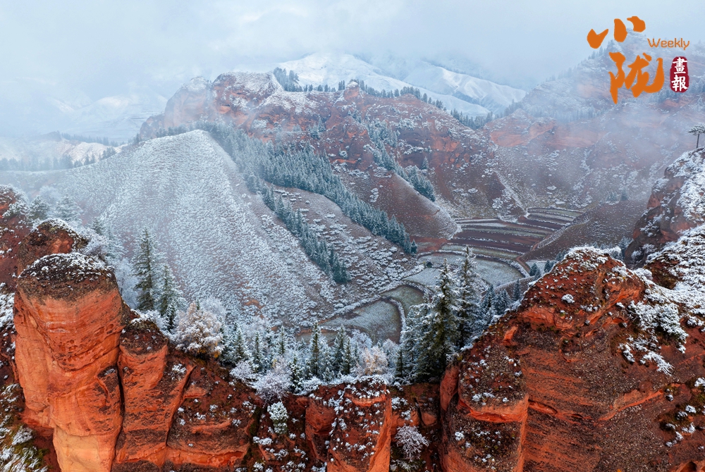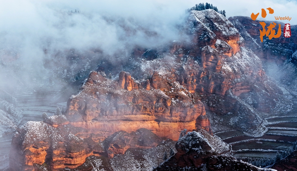 當陽光漫灑,積雪映襯著巖層的斑斕紋理,山間霧氣如輕紗浮動,仿佛大地正以靜默完成一場季節(jié)的儀式。這片雪中丹霞,既存地質(zhì)之雄魄,亦添冬日的空靈詩意。