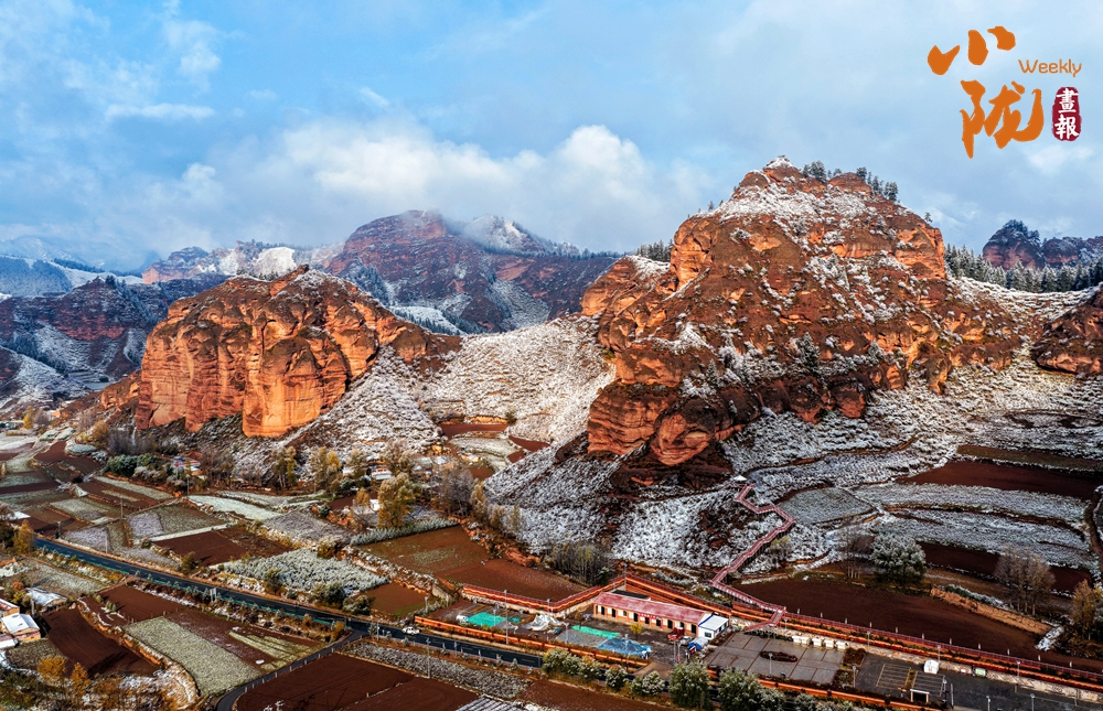 晨光中,雪色與丹霞相映生輝;暮色里,赤巖與積雪共染余暉。這幅景象既有西北的蒼茫,又不失江南的婉約,是自然贈與的視覺盛宴。
