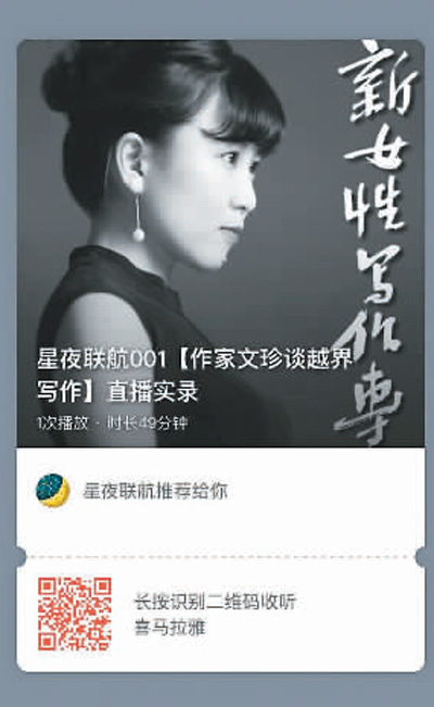 碼字人書店則聯(lián)合書萌、做書、小眾書坊、林贊說、生活便簽等書店、圖書策劃、影像文化品牌和推廣機(jī)構(gòu),借助文化出版機(jī)構(gòu)的支持,共同推出“星夜聯(lián)航”,在全國書店、文藝社群線上同步直播。李蘇皖告訴本報記者,3月的主題是“女性·生長”。3月7日晚第一期,女作家文珍做線上分享會“我的閱讀和越界寫作”,當(dāng)天有41個書店及社群、近萬人參與;第二期3月14日晚,詩人里所線上分享“寫作時是否要在意女性身份”,參與的書店和社群增加到69個。