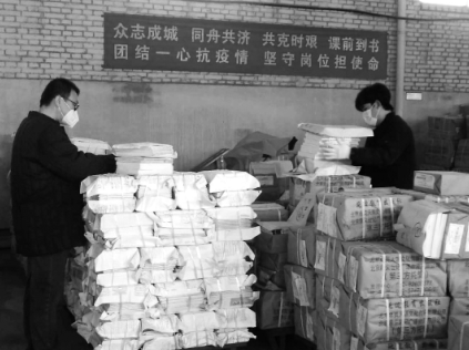 為減少人員聚集,張家口市店教材用書部與部分學校溝通聯(lián)系,根據(jù)不同的年級和班級劃分了領書的時段,采取分年級分時段領書的方式,由每個班級家長委員會的家長到校取書,離校后再把書分給本小組的家長。張北分公司采取了教材教輔裝袋進校、分時段發(fā)放的方式。員工們加班加點連夜為張北縣二中3600名學生配發(fā)圖書,確保第二天送書到校。赤城分公司積極與學校溝通對接,縣城學生的教材全部采取郵寄的方式快遞到家,農村偏遠地區(qū)也都送達了行政村。