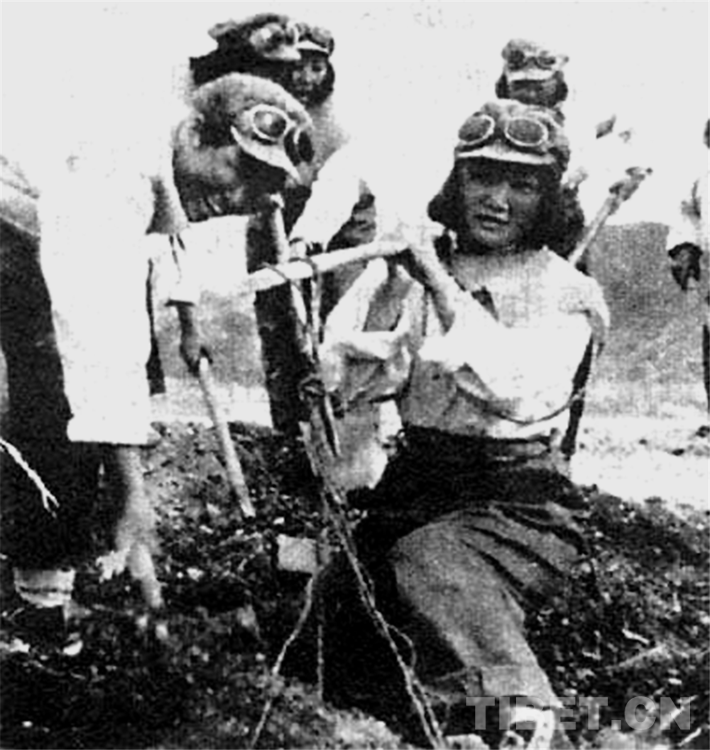 圖為《天路行軍1950——千名女兵徒步進藏紀實》中插圖:搶修機場的女兵