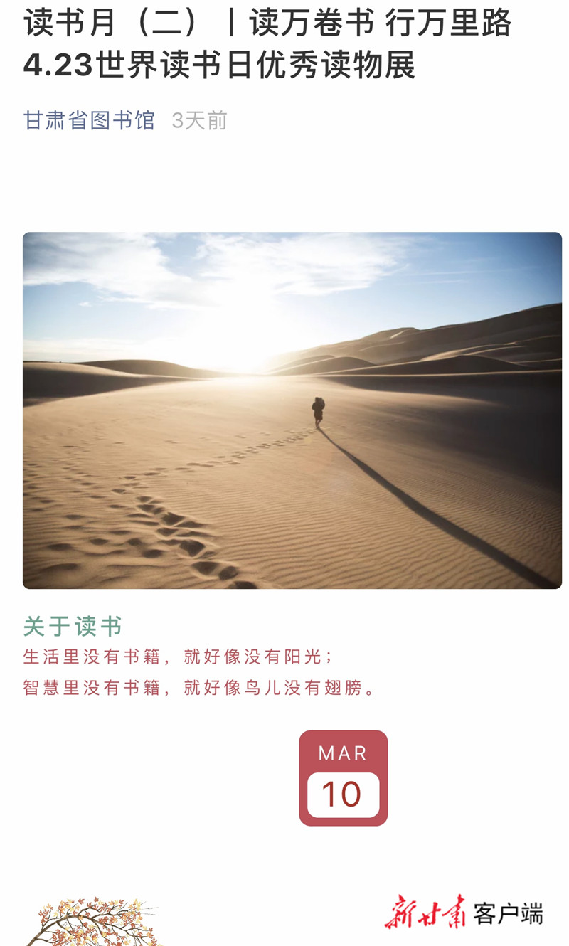 讓我們一起讀書吧!甘肅省圖書館推出線上讀書月系列活動