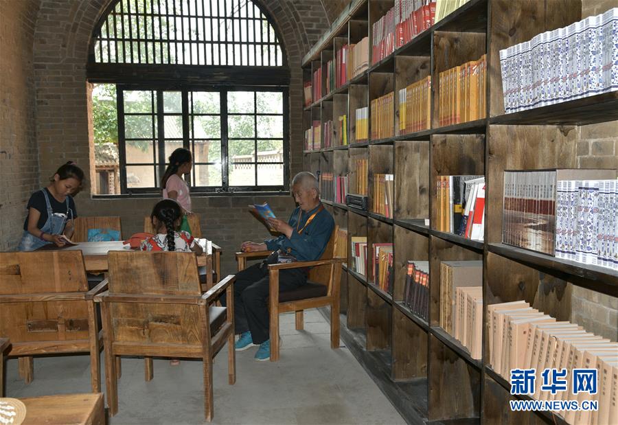 老苗書(shū)館就是在其中一處窯洞上修建而成。“這個(gè)院子共有8口窯洞組成,一百多年前由一戶苗姓人家修建,所以取名老苗書(shū)館。”51歲的苗樹(shù)生是書(shū)館的第一任館長(zhǎng),也是建設(shè)者之一。“我們是24小時(shí)開(kāi)放,村民可以把書(shū)拿回家,還可以把家里的書(shū)拿來(lái)?yè)Q著看,整個(gè)書(shū)館藏書(shū)5萬(wàn)多冊(cè),很多都是黨員干部和志愿者捐來(lái)的。”苗樹(shù)生說(shuō)。