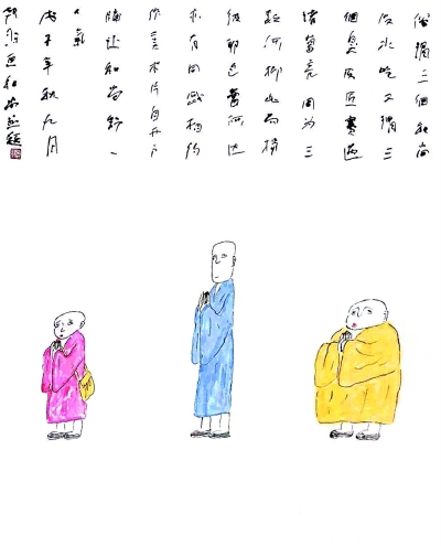 韓羽為動畫片《三個和尚》設計的人物造型