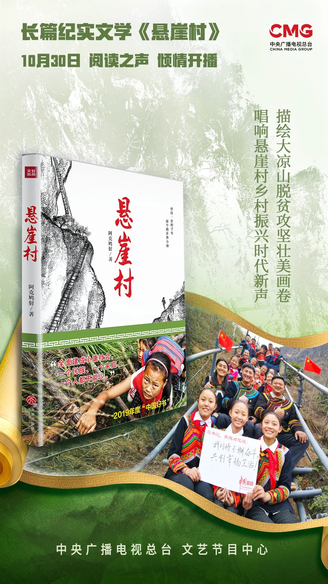 長(zhǎng)篇紀(jì)實(shí)文學(xué)《懸崖村》于10月30日起在中央廣播電視總臺(tái)閱讀之聲開播,同時(shí)上線新媒體。