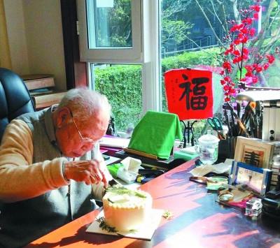 1月15日,馬識途在成都家中過106歲生日。馬萬梅攝