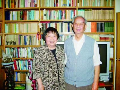 2002年,樂(lè)黛云與湯一介在朗潤(rùn)園家中書房合影。選自《九十年滄?!?/p>