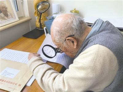 “我雖然歲數(shù)很大,身體不好,眼睛近瞎,但是我仍然堅(jiān)持在北大養(yǎng)成的習(xí)慣,學(xué)習(xí),學(xué)習(xí)再學(xué)習(xí),眼睛看不清楚,我用放大鏡也要讀書。”說著,馬識(shí)途拿起了身邊的放大鏡示意。
