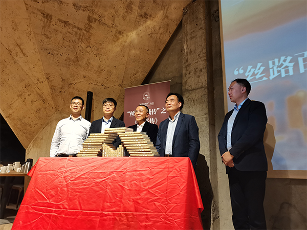 在發(fā)布式上,“絲路百城傳”新的標識同時發(fā)布,該標識將陸海絲路、駱駝和“絲路百城傳”篆書及英文生動融為一體,包含該叢書融通古今中外、服務(wù)“一帶一路”的深刻蘊意。