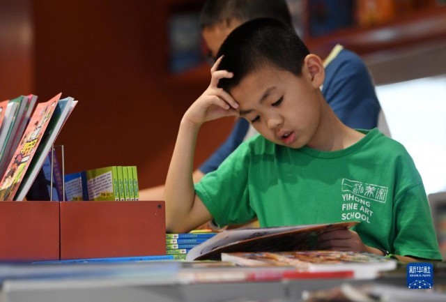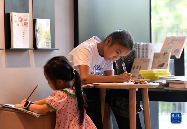 進(jìn)入暑假,廣西南寧市不少學(xué)生來到書店閱讀,享受書香假期。