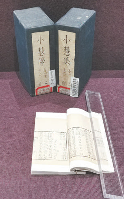 中國非物質文化遺產館展出的清代刻本《小慧集》,其中用工尺譜記錄的“鮮花調”是民歌《茉莉花》最早的曲譜之一。 記者 周飛亞攝