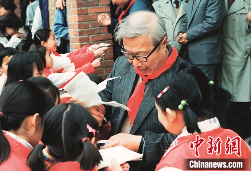 任溶溶為學生簽名。中新社發(fā) 受訪者 供圖