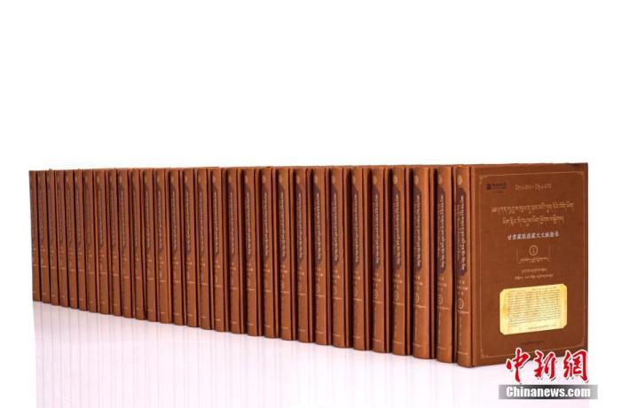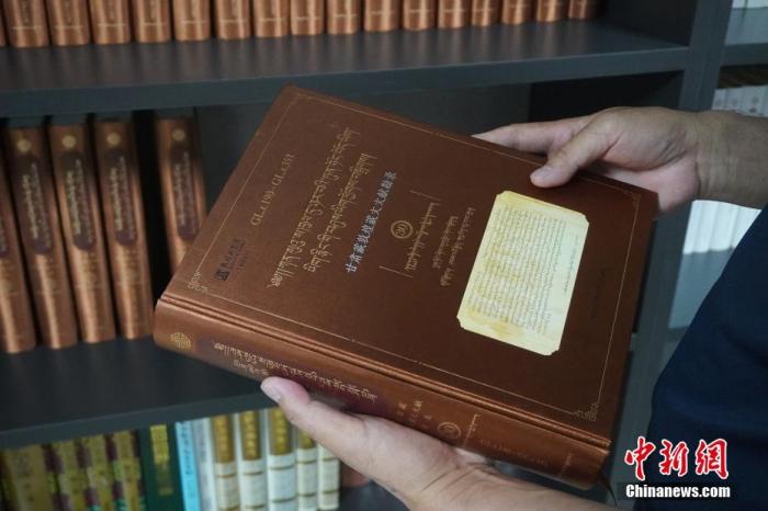 8月26日,甘肅蘭州,甘肅民族出版社資料室內(nèi)收藏的《甘肅藏敦煌藏文文獻(xiàn)勘錄》。該叢書(shū)共30卷,約2205余萬(wàn)字,收錄了6700余件甘肅藏敦煌藏文文獻(xiàn),系國(guó)內(nèi)外首次以全文錄入的方式出版。 中新社記者 九美旦增 攝