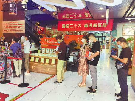 鰲峰坊書城總經(jīng)理岳志剛告訴記者,福建新華發(fā)行集團還在全省分公司開展以“喜迎二十大 書香滿八閩”為主題的感謝讀者系列活動,為期50天。其間,鰲峰坊書城不僅在線下門店各樓層均設(shè)置了二十大圖書專區(qū),還在線上每天推薦相關(guān)主題出版物以滿足廣大讀者學(xué)習(xí)需求。