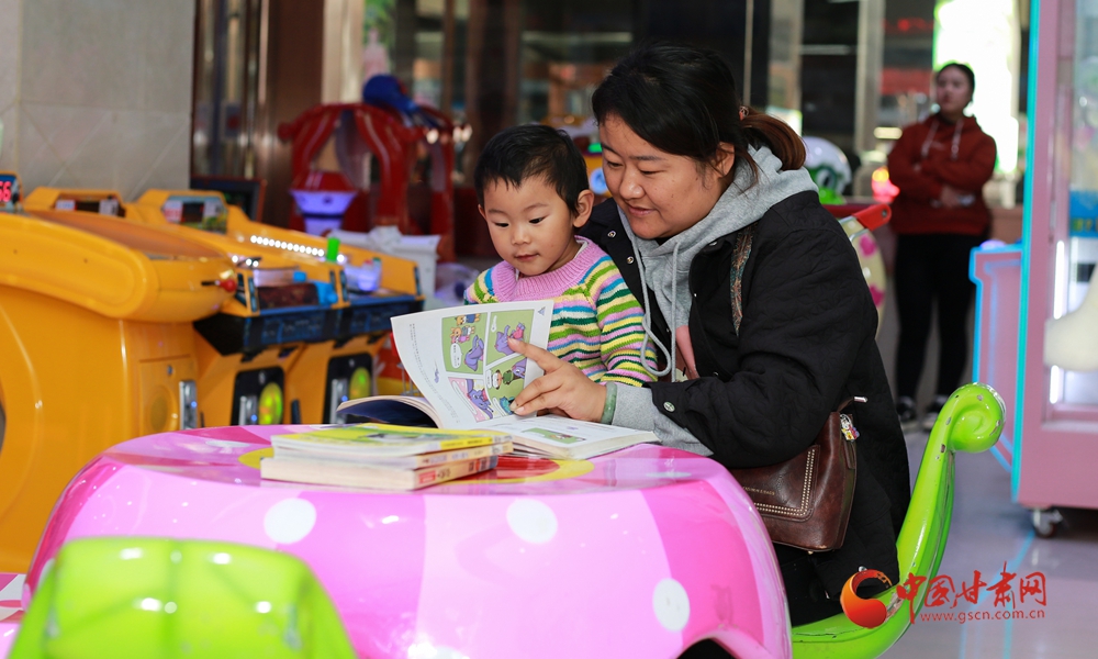 11月8日下午,平?jīng)鍪薪饾檱H購物中心一樓大廳,女孩張美華和男朋友劉大川看到新設立不久的閱讀服務點,于是隨手翻閱起書架上的書籍。這個服務點,就是平?jīng)鍪嗅轻紖^(qū)圖書館在中心城區(qū)設立的5個便民閱讀服務點之一。
