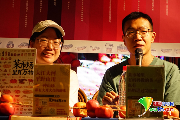 中國青年網(wǎng)北京5月23日電(記者 張?jiān)姮摚┪逶率谴合慕惶娴臅r(shí)節(jié),也是菜市場里瓜果蔬菜交替爭“鮮”的時(shí)節(jié)。八方食客來到菜市場里,尋找盤中餐里的風(fēng)味。近日,北京科學(xué)技術(shù)出版社在蘇州雙塔市集舉辦了“菜市場”主題活動(dòng),并邀請到了《菜市場里有萬物》一書的作者陳瑤以及生活類播客節(jié)目《呼叫仙貝》的主播張老師來到現(xiàn)場,分享他們的“菜場經(jīng)”。