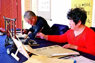 市民在社區(qū)文化中心練習(xí)書法。光明日報記者 郭俊鋒攝