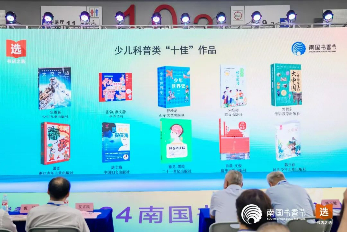 活動(dòng)現(xiàn)場(chǎng),嘉賓依次揭曉五大類(lèi)“十佳”作品入選名單。今年入選的50部作品,延續(xù)了往屆“十佳”作品品質(zhì)閱讀要求,緊貼時(shí)勢(shì),包羅萬(wàn)象,不乏“新質(zhì)生產(chǎn)力”等熱點(diǎn)話(huà)題。同時(shí),我們也很欣喜的看到,在兒童文學(xué)、少兒科普領(lǐng)域,涌現(xiàn)出不少新生代原創(chuàng)作者。