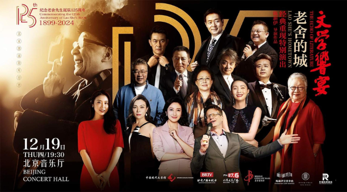 12月19日,一場(chǎng)獨(dú)特的文學(xué)“響”宴在北京音樂(lè)廳舉行。這是一期以老舍為文化主題的詩(shī)文雅集,一個(gè)關(guān)于歷史文化名城北京的年度盛典。在總導(dǎo)演陳薪伊的引領(lǐng)下,濮存昕、斯琴高娃、史可、陶虹、春妮、季冠霖、李立宏、任志宏、徐濤、大山、李洪濤、小柯、張樹榮等眾多著名藝術(shù)家,共同誦讀老舍先生的經(jīng)典名作,向這位偉大的人民藝術(shù)家致敬。