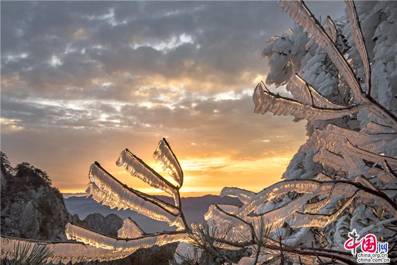 【點睛】2019年最后一天黃山風景區(qū),出現(xiàn)壯觀的日出、霧凇、云海景觀,到處銀妝素裹,冰雕玉砌。