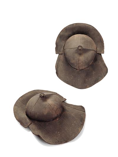 先看前加沿笠帽,大家看是不是有些眼熟?沒(méi)錯(cuò),這頂帽子與影視劇中英雄俠客們所戴的帽子很相似,《神探狄仁杰》里的李元芳、《水滸》中的林沖外出時(shí)就戴類似的帽子。為什么要戴這樣的加沿笠帽呢?為了遮光啊。別小瞧這頂前加沿笠帽,它的背后還有一段歷史故事呢:相傳元世祖忽必烈騎馬射獵時(shí)覺(jué)得日光太過(guò)炫目,聰慧體貼的皇后便為他設(shè)計(jì)了這種前面加沿的帽子,戴這種加沿帽遮光效果就好多了,忽必烈非常喜歡,便將這種式樣固定了下來(lái),以后國(guó)人紛紛效仿,成為流行款式??墒牵扑问窃谠?,元芳和林沖似乎不該戴類似的帽子?既是藝術(shù)形象,就不用深究了吧。人類智慧相通,英雄更是惺惺相惜,既都是英雄,戴上同款的帽子也是應(yīng)有之義。
