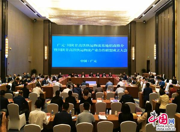 當(dāng)日開(kāi)工儀式后結(jié)束后,還舉行了廣元·川陜甘高鐵快運(yùn)物流基地招商推介暨川陜甘高鐵快運(yùn)物流產(chǎn)業(yè)合作聯(lián)盟成立大會(huì)。該聯(lián)盟由54家高鐵快運(yùn)物流相關(guān)單位自發(fā)成立,將以高鐵快運(yùn)物流基地為核心,搭建鐵路高鐵快運(yùn)、生產(chǎn)制造、商貿(mào)流通、社會(huì)物流企業(yè)合作平臺(tái),通過(guò)物流組織方式創(chuàng)新,實(shí)現(xiàn)供應(yīng)鏈降本增效,讓各方收益;同時(shí)實(shí)現(xiàn)資源對(duì)接,優(yōu)勢(shì)互補(bǔ),共同推動(dòng)廣元高鐵快運(yùn)物流基地高效建設(shè)運(yùn)營(yíng),推動(dòng)川陜甘地區(qū)物流業(yè)提檔升級(jí),進(jìn)一步支持區(qū)域生產(chǎn)制造和商貿(mào)流通高質(zhì)量發(fā)展。