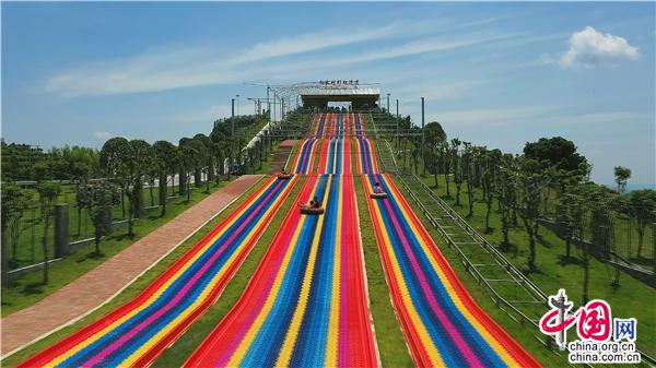 來到向家村,坐環(huán)山小火車是觀光賞景的絕佳選擇,坐上舒適的座椅,小火車便平穩(wěn)地啟動(dòng)了。“前方左邊山頭就是向家村板栗園右邊則是風(fēng)光旎麗的月亮湖。”面帶微笑的導(dǎo)游向游客們介紹。一座郁郁蔥蔥的山丘,在明媚的陽光下顯得分外美麗。一陣水汽襲來,打造精美的水上樂園映入眼簾。樂園里設(shè)施齊全,既有水深0.6米的潛艇,又有0.8米高的冰山雪熊,一群小朋友在家人的陪伴下盡情戲水游樂。峰回路轉(zhuǎn),一道靚麗的“彩虹”赫然橫在路旁,這是一條長(zhǎng)度為150米的彩虹滑道,是邵陽市目前長(zhǎng)度最長(zhǎng)、寬度最寬、坡度最大、游玩最刺激的一條滑道,極受小朋友喜愛和年輕人的熱捧。還有露營(yíng)基地、青少年拓展中心、垂釣中心成為“驢友”的天堂。一位來這露營(yíng)的朋友感嘆道:“這是一片神奇的土地,這是充滿誘惑和野趣的地方,在這里可以感悟到生命的自然和諧;通過爬山,我找回了許多久違的輕松與親切。”此外,向家村還是別具韻味的休閑雅地,這里坐落著造型古樸、飛檐翹角的華儼禪寺,擁有木質(zhì)廊柱、藤蔓茶幾、布料沙發(fā)的浪漫小屋,丹桂飄香的金玉滿堂的桂花園……真是讓人流連忘返。