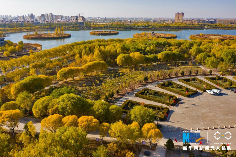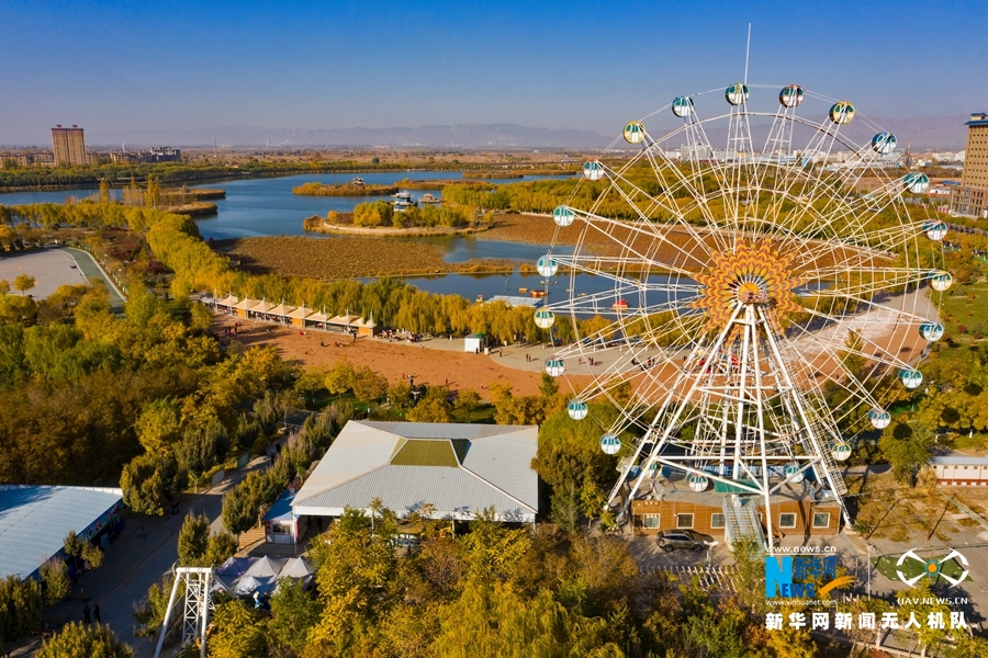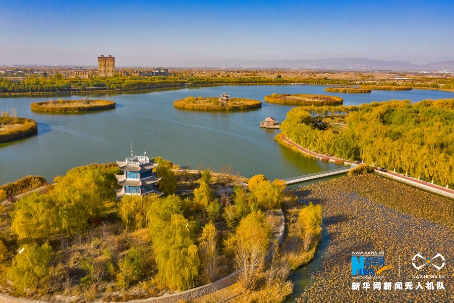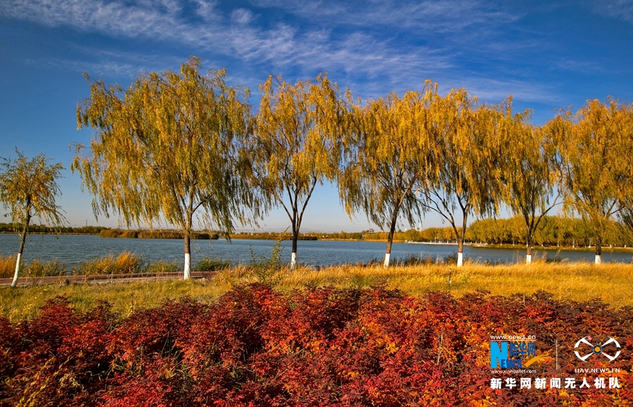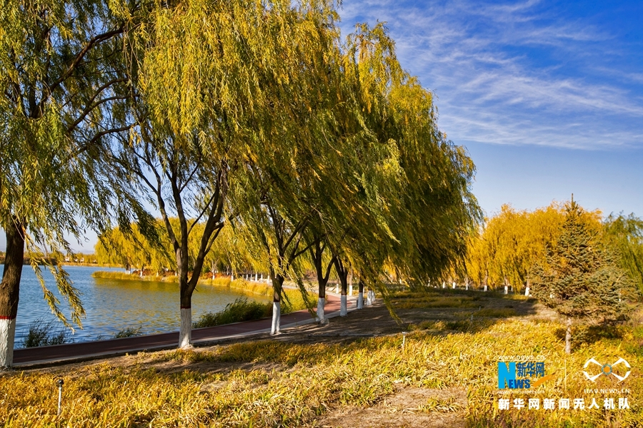 深秋時(shí)節(jié),國家4A級(jí)景區(qū)甘肅省張掖潤泉湖公園秋水依依,草木金黃,呈現(xiàn)出一幅斑斕畫卷。新華網(wǎng)發(fā)(成林 攝)
