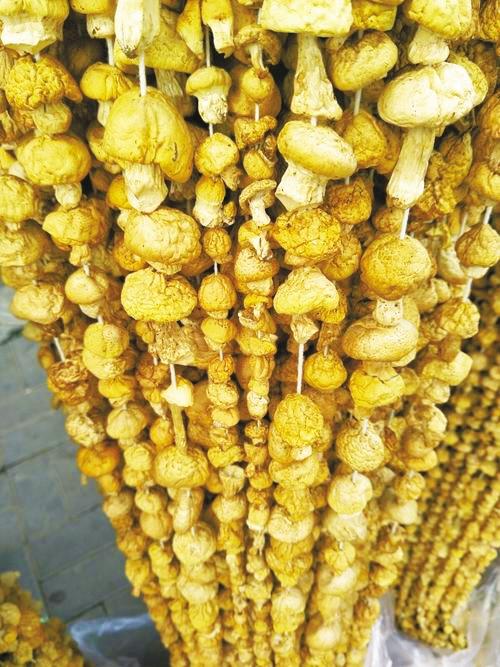 在張掖的土特產品店有售賣晾干的祁連山野蘑菇——出產于祁連山海拔1700至3600米左右的平山坡一帶無污染地區(qū),氣味純正、芳美可口,備受人們的青睞。于是在張掖一帶,便多了一種美食——野蘑菇面片。有幸在當地一家店品嘗一番,鮮美無比。