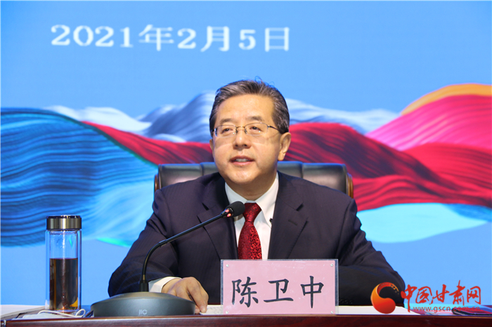 中國甘肅網2月5日訊 (本網記者 張?zhí)m琴 文/圖)2月5日上午,2021年全省文化和旅游局長視頻會議在省會蘭州召開。與往年不同的是,這次會議貫徹落實省委、省政府的要求,蘭州以外的13個市州以視頻會議形式參會。整個會議簡潔、務實、高效,旨在學習貫徹全國宣傳部長會議、全國文化和旅游廳局長會議、省委十三屆十三次全會暨省委經濟工作會議、省“兩會”和全省宣傳部長會議精神,總結2020年主要工作,安排2021年重點任務。甘肅省委宣傳部副部長,省文旅廳黨組書記、廳長陳衛(wèi)中在會上講話,向全省“文旅鐵軍”發(fā)起號召,“干字當頭”的決心引發(fā)全場熱烈反響。